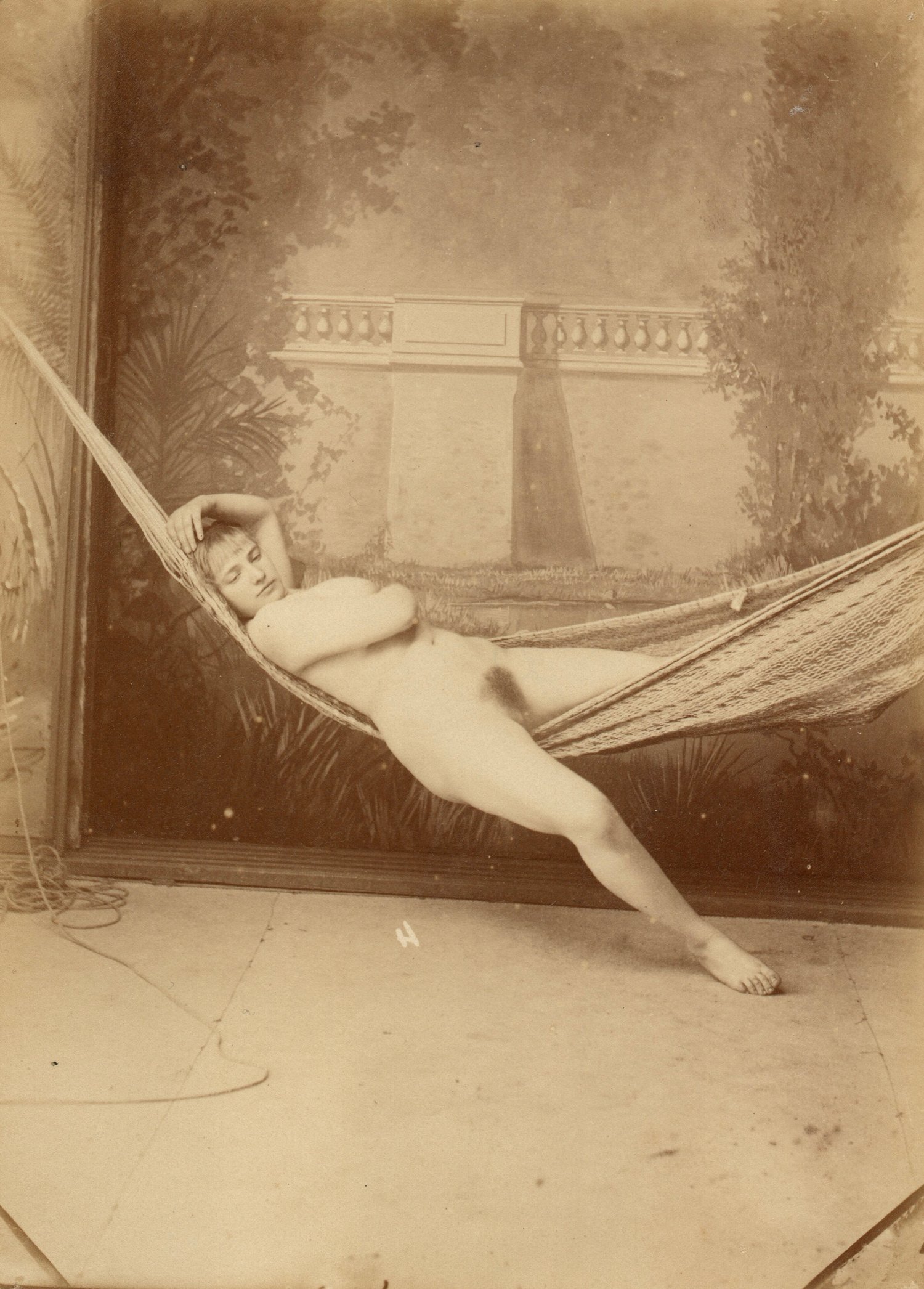 Anonyme: naked woman in a hammock, ca. 1870