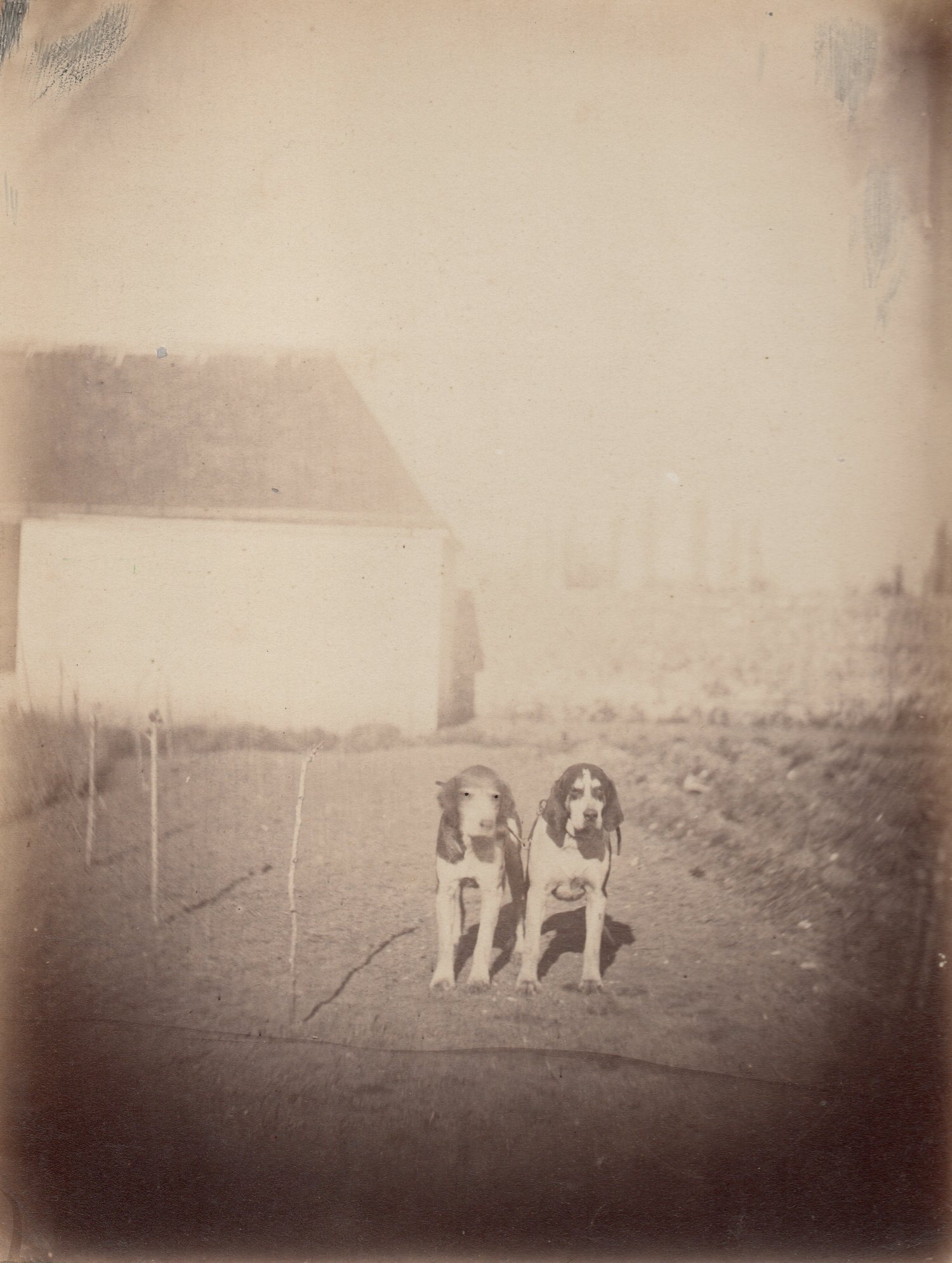 Odart de Parigny: two dogs at the château, France ca. 1862