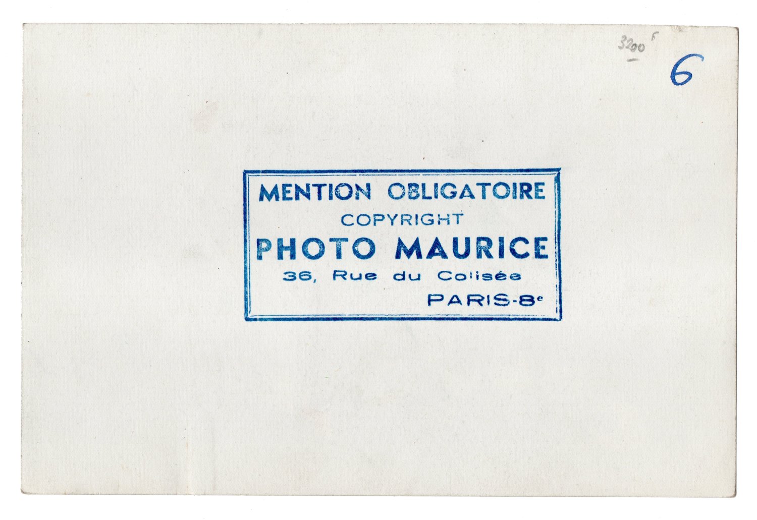 The gelatine silver print is numbered "6" in the upper right corner, near the credit stamp in blue ink on the verso. The print is in overall good condition with only minor traces of use.